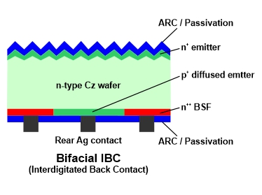 Bifacial modules may employ any of the above cell structures. Manufacturers squeeze more electrons by introducing transparent back glass and packaged product as a Bifacial module. This has added benefit of more power from the reflected solar irradiation from ground or reflections to the back ot module. They are typically heavier due to glass-glass construct.